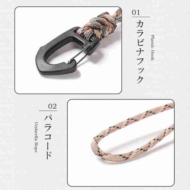 パラコードストラップフック 2個セット カラビナフック パラシュートコード 丈夫 耐久性 スマホストラップ 携帯ストラップ PSB1504S2