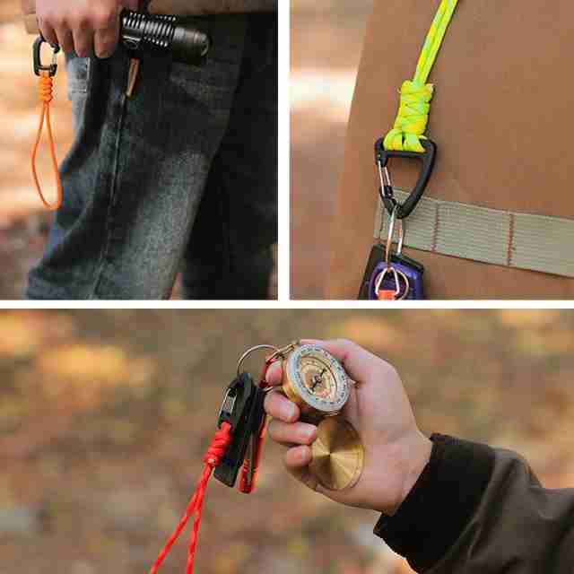 コンパスやミニライトをつけてバックやベルトから吊るしたりと、