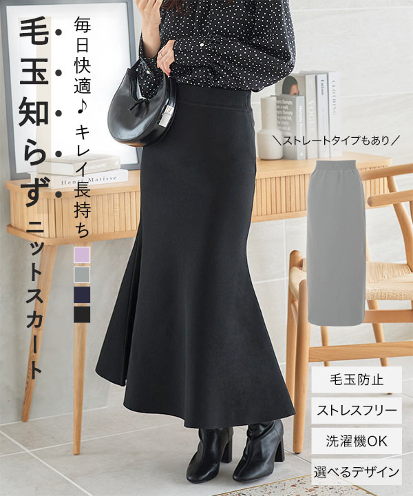 選べる2タイプ 毛玉レスニットスカート M3930 入荷済 レディース ボトム 20代 30代 40代 アンチピリング 毛玉 イージーケア ウォッシャブル 洗濯機 タイト ストレート マーメイド グレー パープル ネイビー ブラック ピンク
