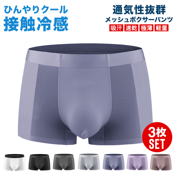 ボクサーパンツ メンズ セット パンツ 夏 3枚組 3枚セット 接触冷感 メッシュ 通気性 ボクサーブリーフ 下着 肌着 インナー 送料無料