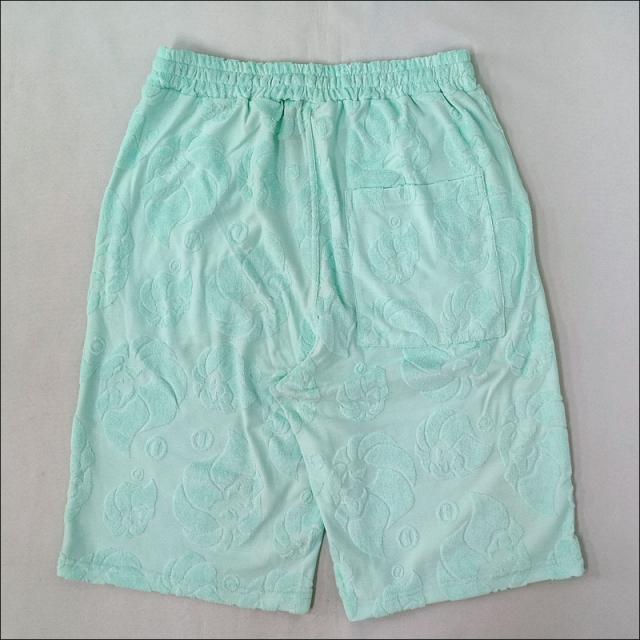 パイルの凹凸でロゴ総柄を入れた技ありショーツ