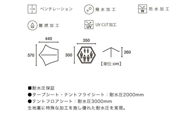 タープ:約 幅570×奥行440×高さ260cm