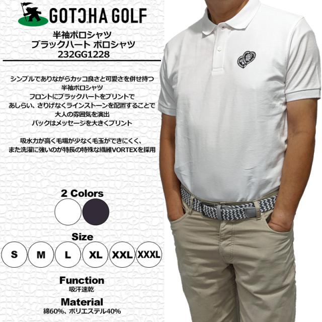 【SALE特価】ガッチャゴルフ メンズ 半袖ポロシャツ 232GG1228 吸汗速乾 ブラックハート 【メール便発送】【新品】SAAR GOTCHA GOLF ゴルフウェア トップス 半そで BLACK HEART
