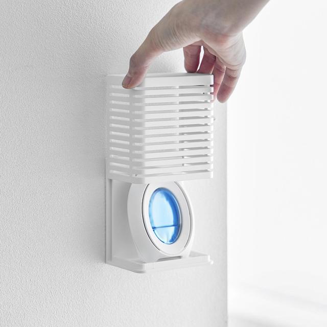 置き場所に困る消臭剤を石こうボードピンで玄関やトイレの壁に浮かせて収納。コンパクトで使いやすいSサイズ・9.7cm。