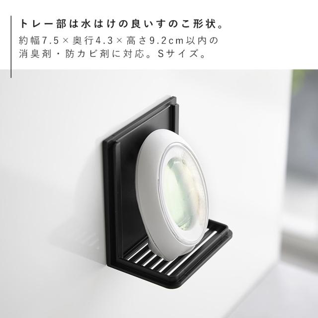 置き場所に困る消臭剤や防カビ剤をマグネットで玄関扉や浴室壁面に浮かせて収納。コンパクトで使いやすいSサイズ・9.7cm。
