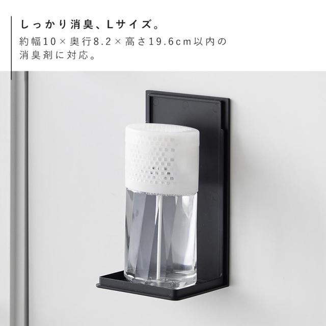 置き場所に困る消臭剤をマグネットで玄関扉や冷蔵庫に浮かせて収納。コンパクトで使いやすいLサイズ・20.3cm。
