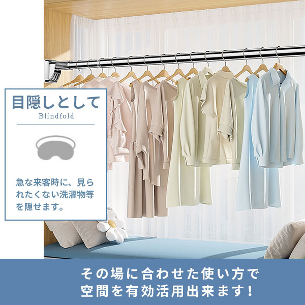 ◎間仕切りカーテンや目隠しカーテンに、便利な突っ張り式なので簡単に設置できます。