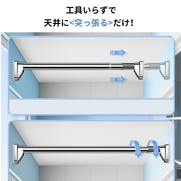 ◎ねじや釘を使わずに壁にしっかりと固定できる伸縮棒!