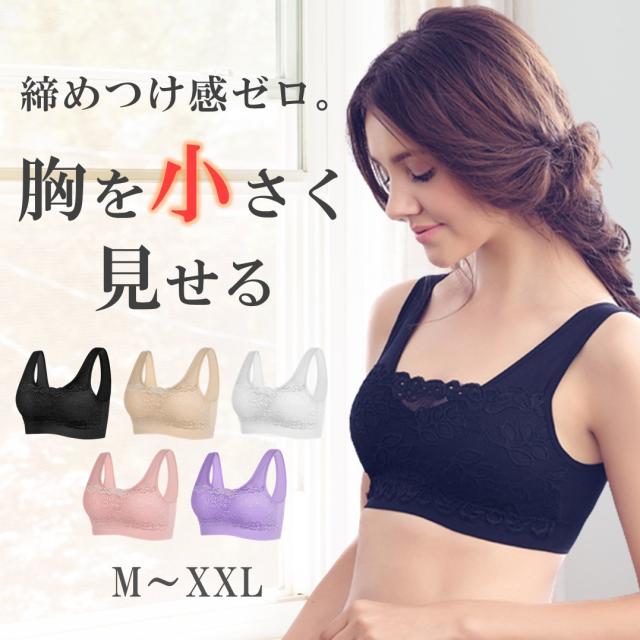 胸を小さく見せるブラ ブラジャー ノンワイヤー ノンワイヤーブラ 大きいサイズ 50代 40代 30代 小さく見せる 着痩せブラ