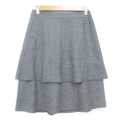 【中古】クミキョク 組曲 KUMIKYOKU ティアードスカート フレアスカート ひざ丈 ウール 1 杢グレー /FF47 レディース