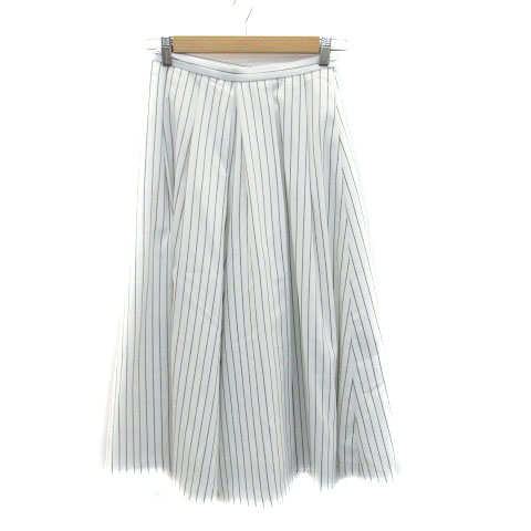 【中古】ラグナムーン スカーチョ ガウチョパンツ 七分丈 ストライプ柄 S オフホワイト 黒 ブラック レディース