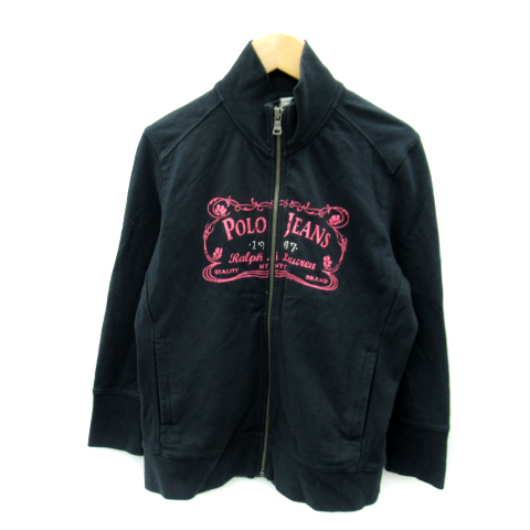 【中古】ポロジーンズ ラルフローレン スタンドカラージャケット ジップアップ ロゴプリント L 黒 女の子 キッズ