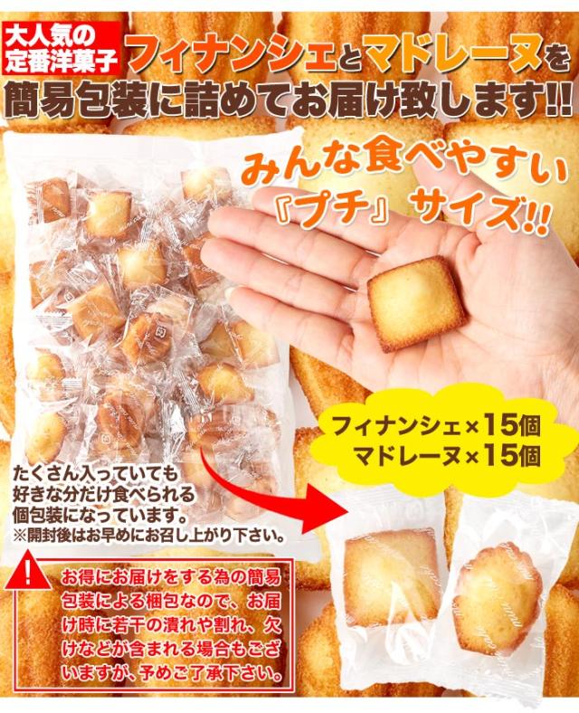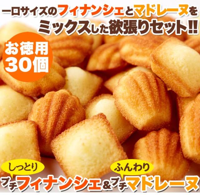 一口サイズで食べやすい!!しっとりプチフィナンシェ&ふんわりプチマドレーヌ30個 メール便 pre