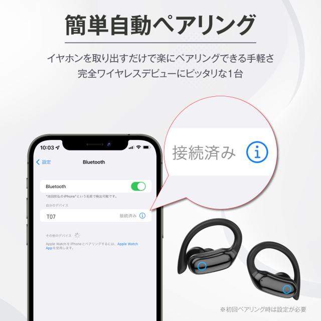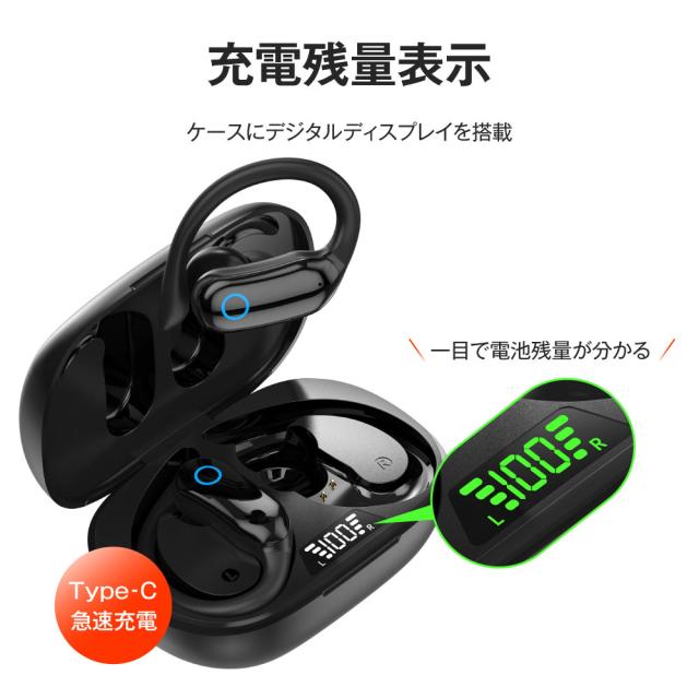 【技適認証済み】 ワイヤレスイヤホン Bluetooth 5.3 ワイヤレス イヤホン iPhone android 耳掛け型 9h連続再生 計36h マイク付き 片耳 両耳 通話 lPX7 防水 Type-C 急速充電 高音質 ブルートゥース T07