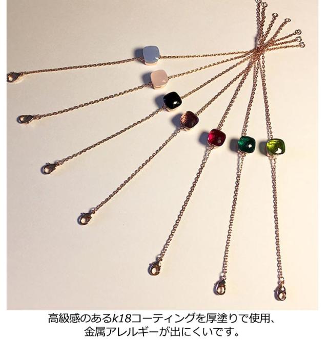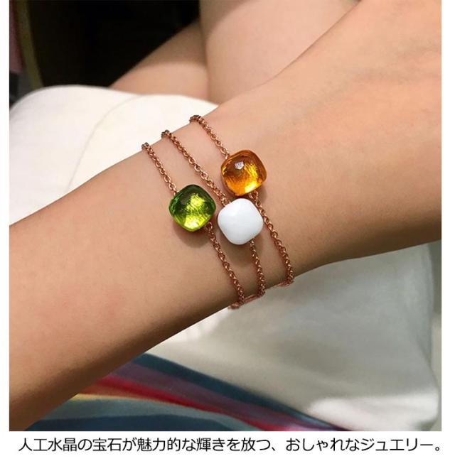 | 人工水晶とk18仕上げコーティングでお作りするシンプルなブレスレット。 スタイリッシュに大人のクラス感をアップ。 人工水晶の宝石が魅力的な輝きを放つ、おしゃれなジュエリー。 スクエアがおしゃれでダイレクトに石の美しさを楽しめます ほぼ正方形でジェリーのように愛らしいリングです。 石の周りには枠がないので、指の上に直接石を置いているような美しさが引き立つ研ぎ澄まされた印象です。 高級感のあるk18コーティングを厚塗りで使用、金属アレルギーが出にくいです。 20代、30代、40代、50代と幅広い年代にぴったり似合う、上品で贅沢な高級感がおすすめです。 普段使いや特別な装いに、シーンを選ばずお使いいただけます。 | |