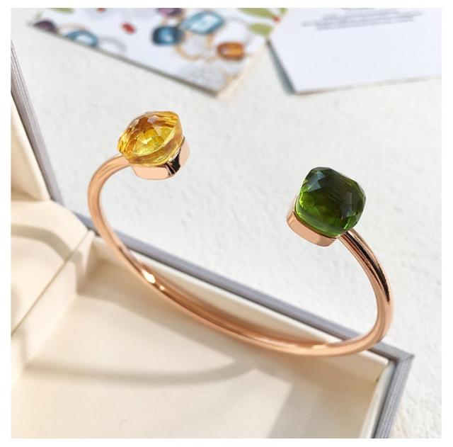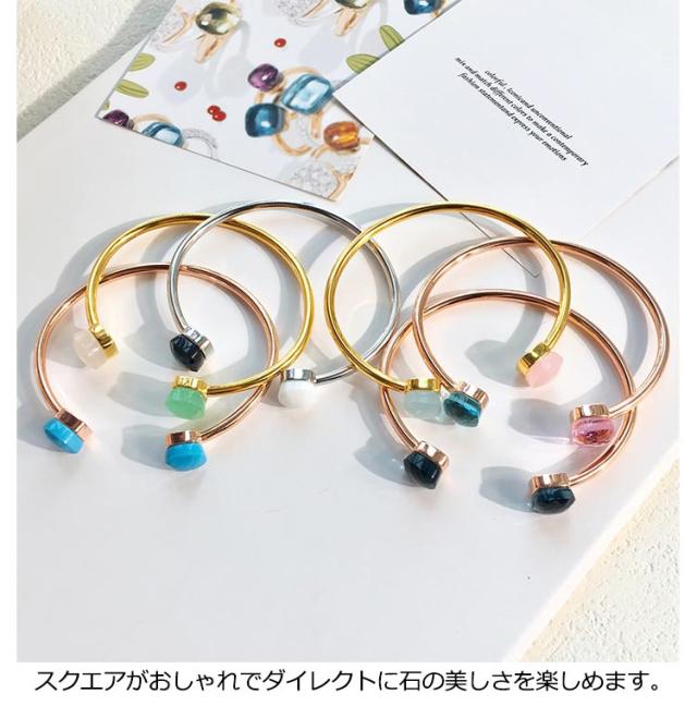 ブレスレット 真鍮 人工水晶 18k コーティング クオーツブレスレット おしゃれ かわいい シンプル クオーツ リング ヌードブレスレット スクエア リング 人工水晶 シトリン アメジスト クリスタル ペリドット 送料無料