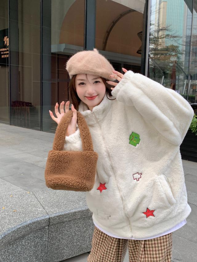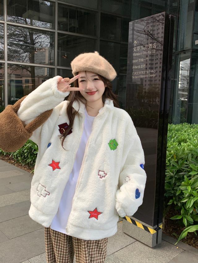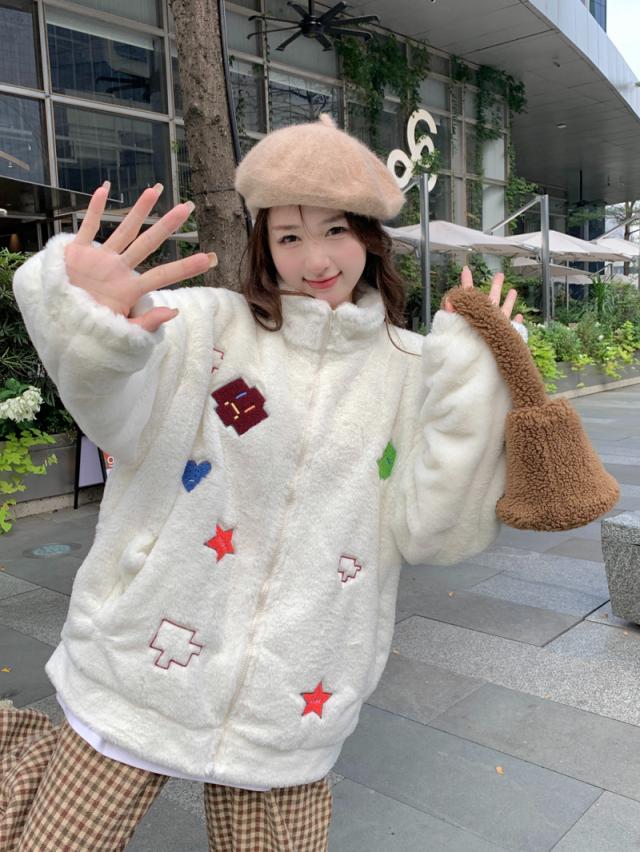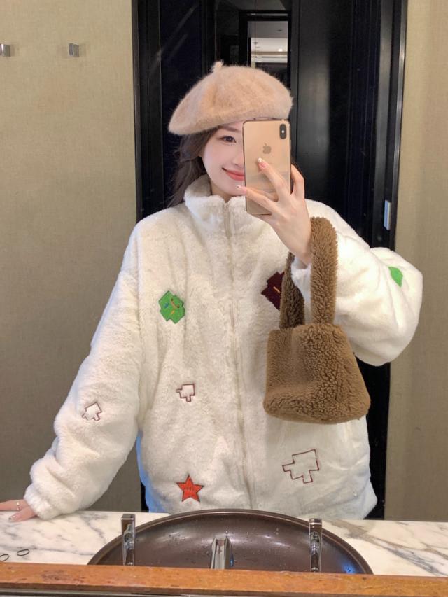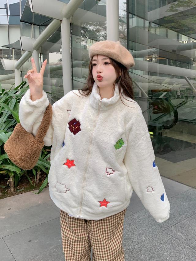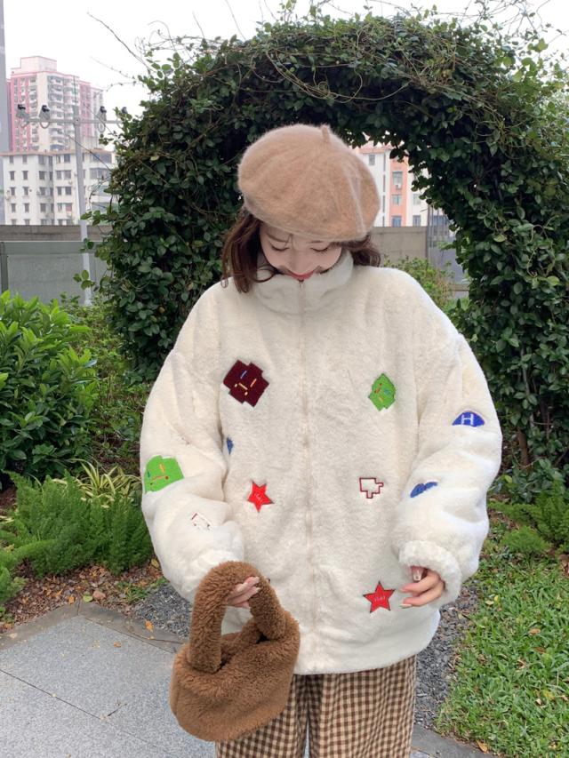 ボアコート アウター 秋冬 フリースジャケット フリースコート カップル ペア 刺? もこもこ ブルゾン ボアジャケット 韓国風 ふわふわ 可愛い お洒落 ジャンパー M L XL 2XL