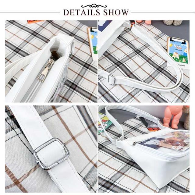 | ・肩に掛けたり、ショルダーバッグとしても使える便利な2WAY痛バッグ ・オシャレに敏感な女子中高生の注目アイテム♪ ・アレンジ自在のクリア窓付き ・使い勝手のいいB5対応サイズ ・しっかり閉まるファスナー仕様 | |