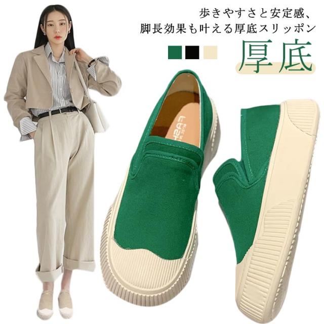 厚底スリッポン レディース キャンバススリッポン おしゃれ カジュアル 無地 疲れない 靴 厚底 美脚 スニーカー 厚底スニーカー カジュアル フラットシューズ 履けやすい 安定感 歩きやすい シンプル 通勤 通学 丈夫 大きいサイズ ギフト プレゼント 送料無料