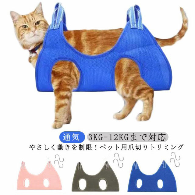 爪切りトリミング 吊り下げ 猫 犬 グルーミングハンモック ペット用品 S字フック付き ハンモック 爪切り トリミング ペット美容 お風呂 入浴 ドライヤー 歯磨き 耳掃除 服薬 目薬 介護 吊り下げ 拘束バッグ メッシュ 通気性 ホール周り クッション性 体 優しい 送料無料