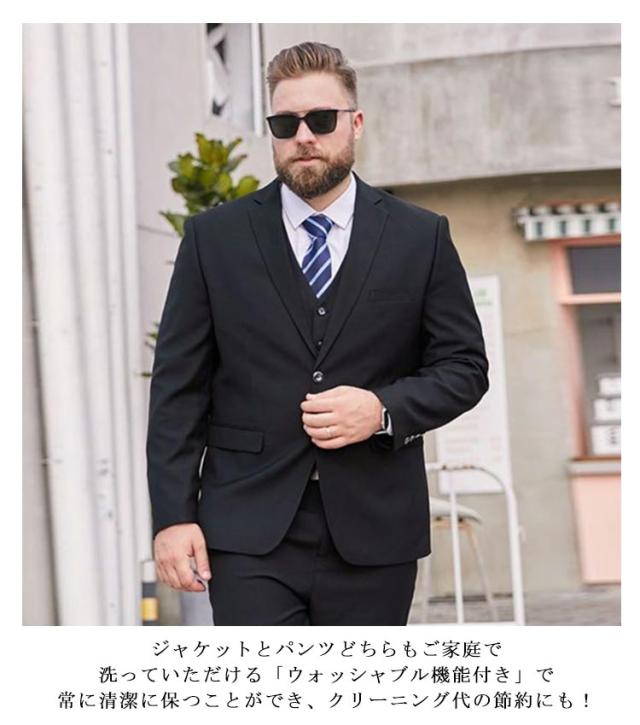 大きいサイズ スーツ メンズ フォーマル スーツ ビッグサイズ E体 テーラードジャケット パンツ 洗える ウォッシャブル ビジネス スーツ セットアップ 上下 冠婚葬祭 結婚式 黒 オールシーズン 春夏 秋冬 送料無料