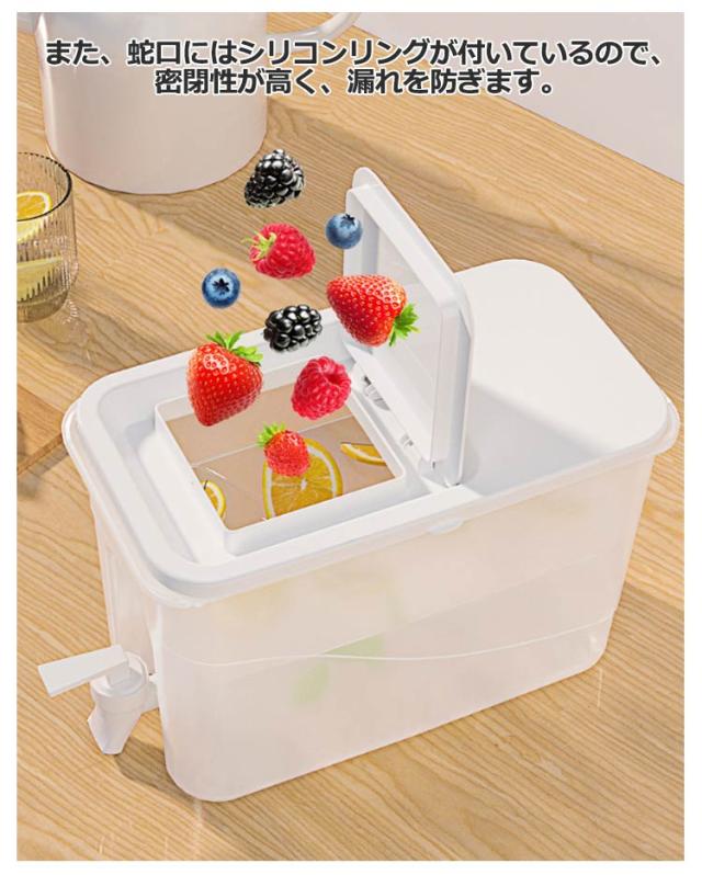 | 4Lの大容量で家族や友達とピクニックする時には大活躍!業務用でもおすすめです。【2個セット】 耐熱仕様で、麦茶などの煮出しも可能!(-20℃~120℃) コンパクトで冷蔵庫の中での置き場所にも困りません。 両側に持ち手付きなので、冷蔵庫に入れても取り出しやすいです! 注ぎ口に蛇口があって触れずに開閉できるので、飲むときも衛生的♪ また、蛇口にはシリコンリングが付いているので、密閉性が高く、漏れを防ぎます。 | |