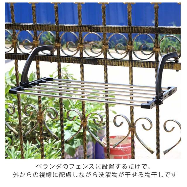 | 工具不要のかんたん取り付け! ベランダ壁に掛けられる物干しラック。 衣類だけでなく、バスタオル、バスマットやキッチンマット、シーツなども干すことができます。 十分なスペースがあるので、シューズやまくらなどの置き干しもできます。 ベランダ壁の厚みに合わせて、調整して簡単に取り付けが可能。 丈夫でサビにくいステンレス製 使わない時は、フック部をたためるので邪魔になりません。 ベランダのフェンスに設置するだけで、外からの視線に配慮しながら洗濯物が干せる物干しです 簡単取り付け設置で、ネジや釘を使用しません。 | |