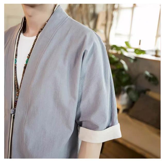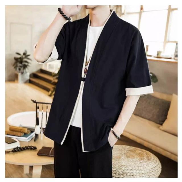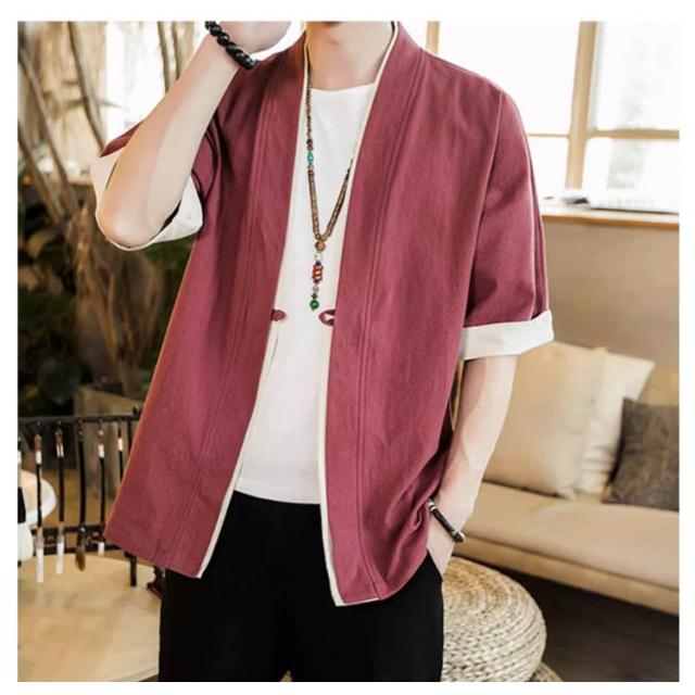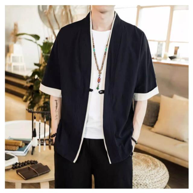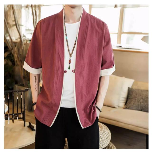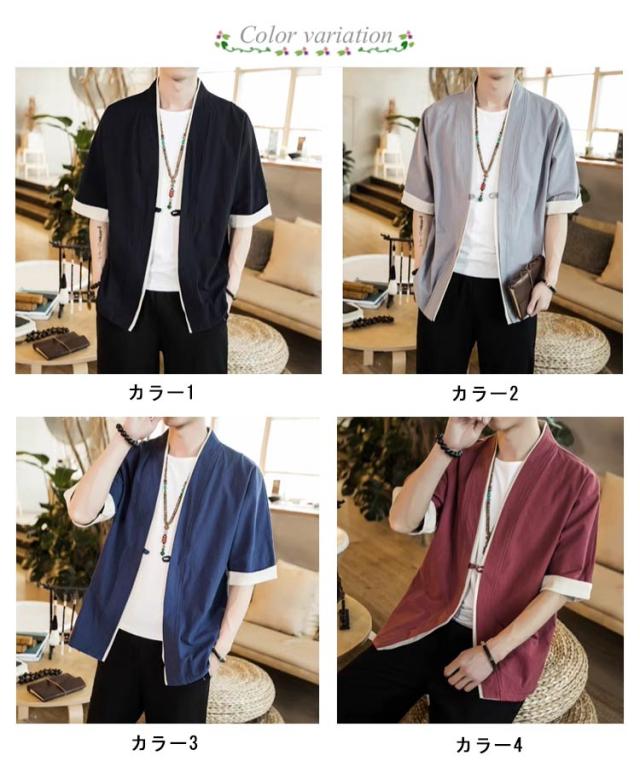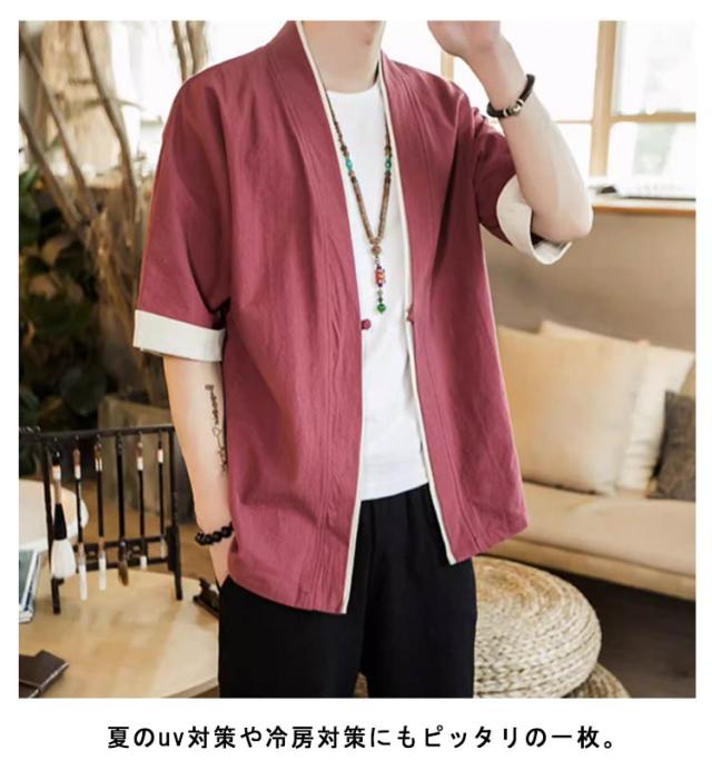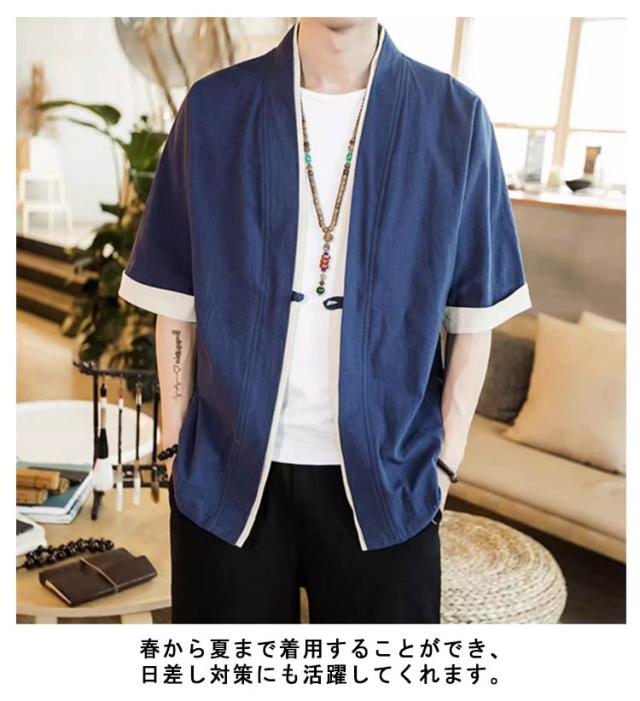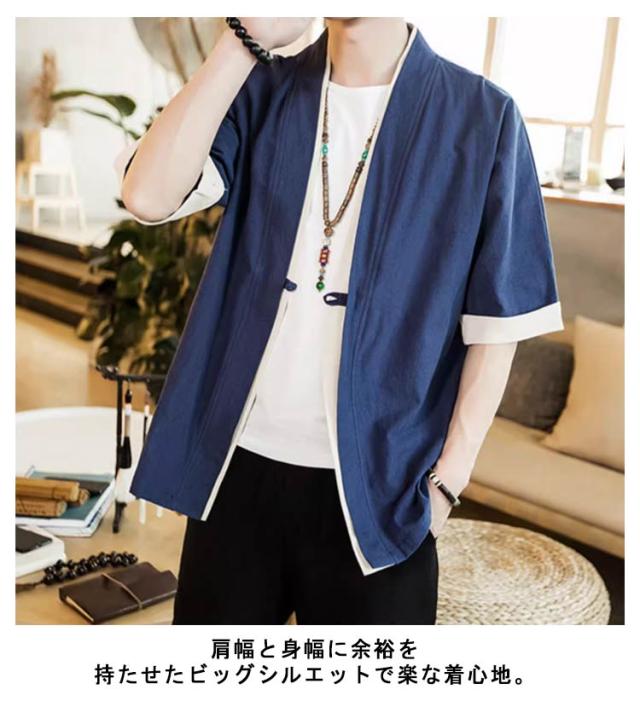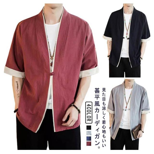 羽織 メンズ カーディガン 浴衣 大きいサイズ 前開き 甚平式 半袖 ゆったり トップス アウター 夏 着物 浴衣 和風 サマーカーディガン レイヤード 重ね着 オーバーサイズ 無地 コスプレ 花火大会 M L XL 2XL 3XL 4XL 5XL