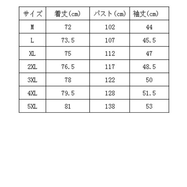 | サイズ | M L XL 2XL 3XL 4XL 5XL |
