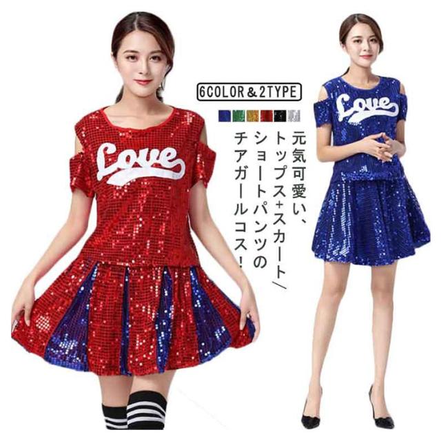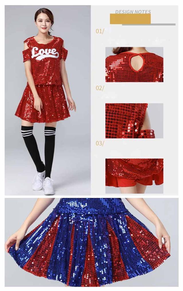 送料無料 スパンコール チアリーダー衣装 ダンス衣装 チアガール 衣装 ユニフォーム チア 制服 コスチューム チア制服 サッカー バスケ ハロウィン イベント S M L XL 2XL 3XL 4XL