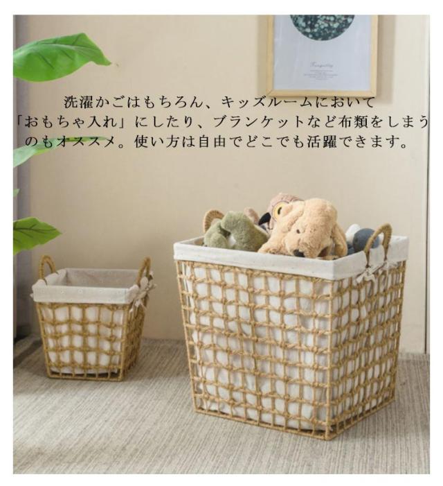 | 天然素材で編まれたランドリーバスケットです。 ナチュラルな天然素材ならではのやわらかなムードがお部屋に馴染みます。 バスケットの内側には、裏地を付けました。収納するアイテムがキレイにしまえます。 取っ手が付いているので持ち運びに便利です。 別の場所に移動させたり、お掃除の際もサッとどかせて便利なポイントです。 ホテル、カフェ、レストランの荷物置きとしても重宝します。 洗濯かごはもちろん、キッズルームにおいて「おもちゃ入れ」にしたり、ブランケットなど布類をしまうのもオススメ。使い方は自由でどこでも活躍できます。 | |