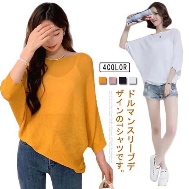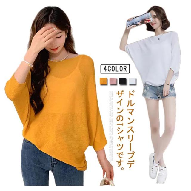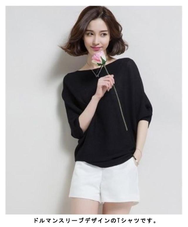 ボートネック Tシャツ カットソー 半袖 5分袖 Tシャツ レディース 半袖Tシャツ ゆったり ドルマンスリーブ 大きいサイズ 韓国ファッション カジュアル 20代 30代 体型カバー