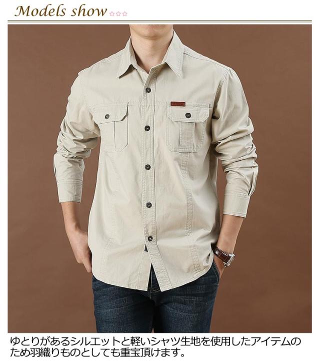 ミリタリーシャツ ポケットあり メンズ ワークシャツ デニムシャツ カーゴシャツ ゆったり コットン 綿 長袖シャツ アメカジ ウエスタンシャツ カジュアルシャツ ライトアウター ブルゾン カジュアル メンズファッション 大きいサイズ 【送無】