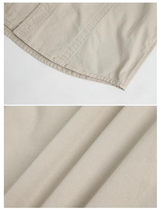 | 様々なスタイルに合わせやすいミリタリージャケット ゆとりがあるシルエットと軽いシャツ生地を使用したアイテムのため羽織りものとしても重宝頂けます。 フラップポケットを配することでデザインアクセントがあるアイテムに。 肌触りのいい綿素材を使用しドライな肌触り。 春、秋のライトアウター、冬場にはインナーとしてお使い頂けます。 | |