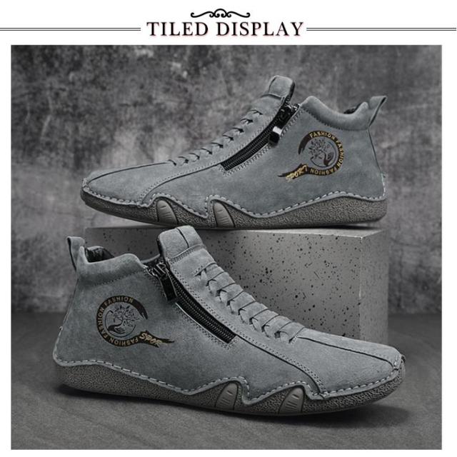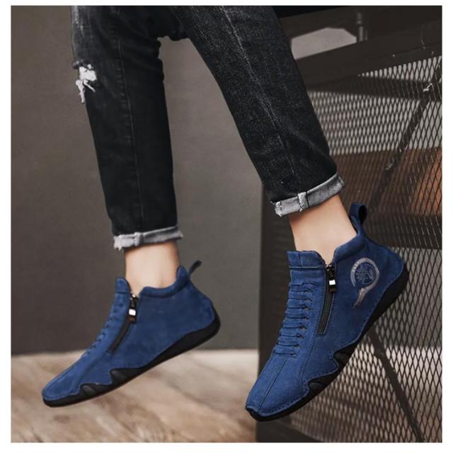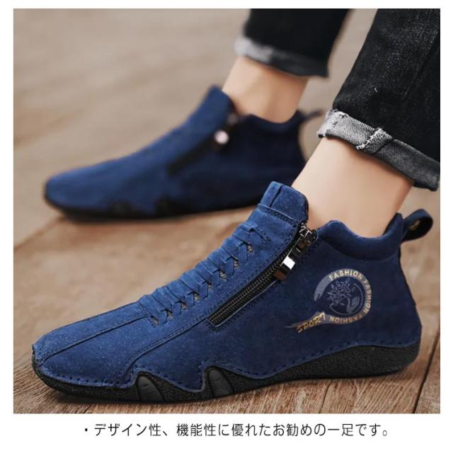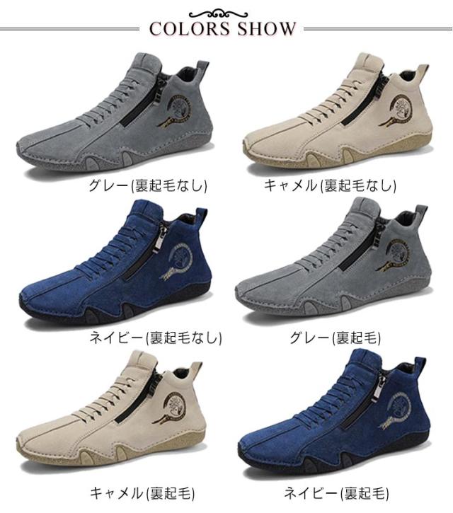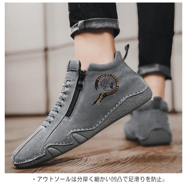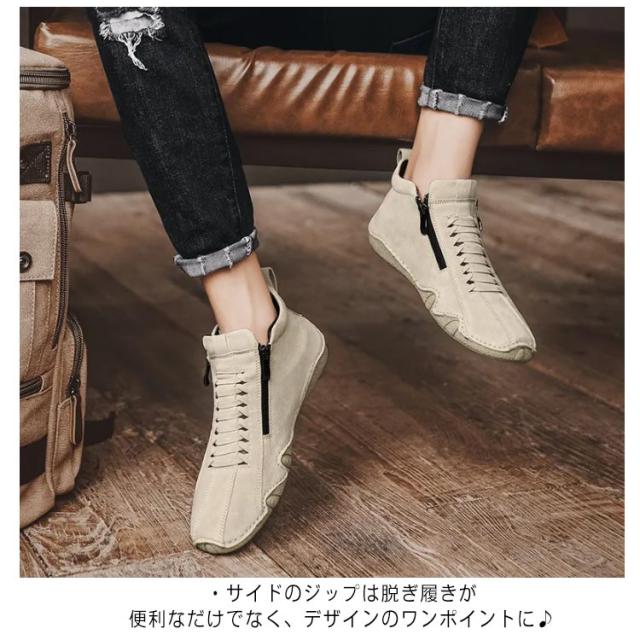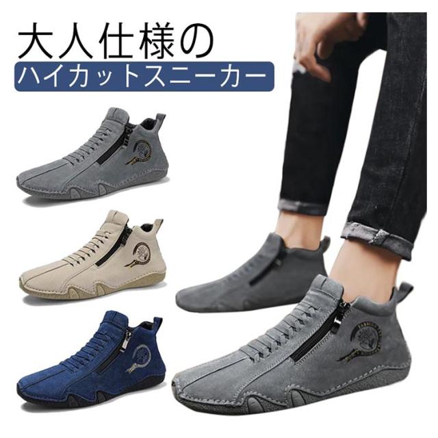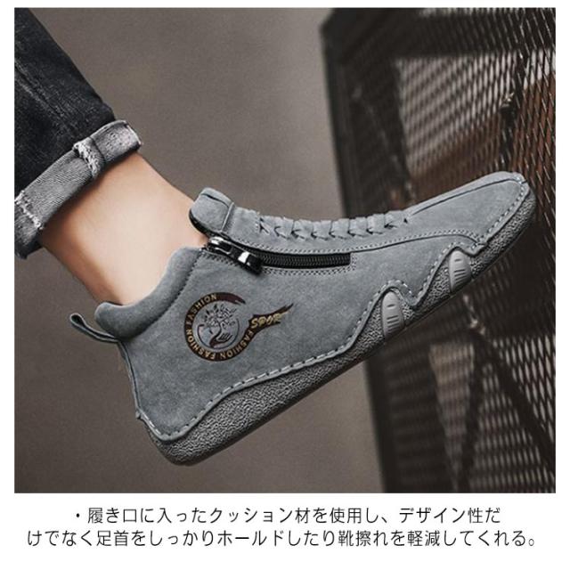 スニーカー メンズ カジュアルシューズ ハイカット 裏ボア 裏起毛 革靴 ドライビングシューズ ジッパー ファスナー スポーティ アウトドア 歩きやすい 疲れにくい レザー 軽量