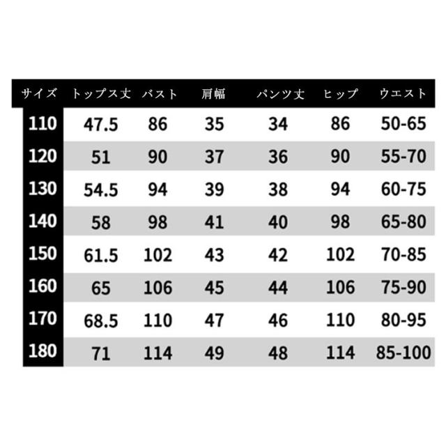 | サイズについての説明 | サイズ:写真通り 【110】おすすめ身長100-110cm おすすめ体重15-20kg 【120】おすすめ身長110-120cm おすすめ体重20-25kg 【130】おすすめ身長120-130cm おすすめ体重25-30kg 【140】おすすめ身長130-140cm おすすめ体重30-35kg 【150】おすすめ身長140-150cm おすすめ体重35-40kg 【160】おすすめ身長150-160cm おすすめ体重40-50kg 【170】おすすめ身長160-170cm おすすめ体重50-60kg 【180】おすすめ身長170-180cm おすすめ体重60-70kg ※上記サイズは平置き実寸になります。 サイズ表の実寸法は商品によって2-4cm程度の誤差がある場合がございます。 |