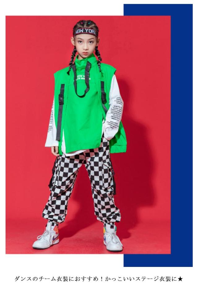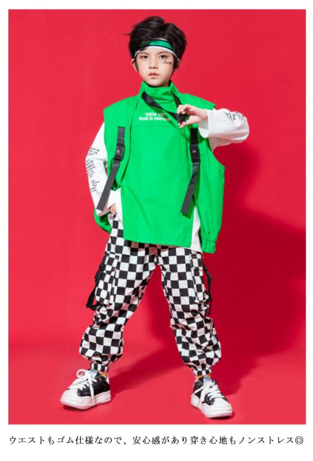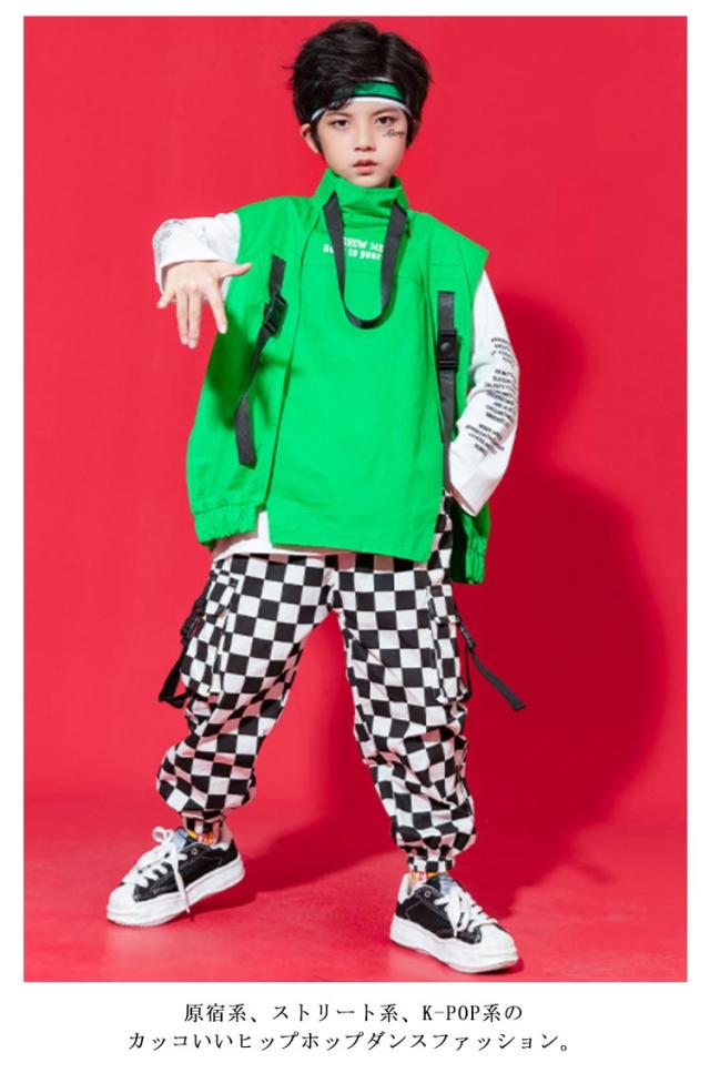 ダンス衣装 キッズ ヒップホップ ダンス服 スーツ セットアップ ジレ パンツ ロングパンツ 女の子 男の子 ダンス衣装 子供 hiphop ダンスウェア ストリート ジュニア 子ども服 ヒップホップ ダンス服 衣装 練習着 K-POP 発表会 110-180cm 送料無料 グリーン 緑