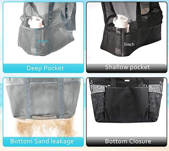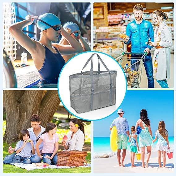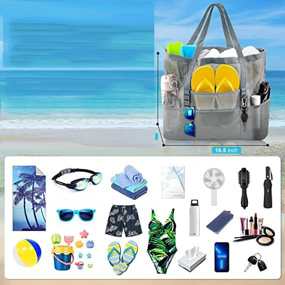 メッシュバッグ 大容量 着替え収納 トートバッグ 多ポケット 折り畳み 手提げ 砂場 海遊び 水泳 海水浴 ビーチバッグ プールバッグ 旅行用 小物入れ