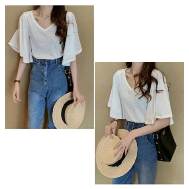 | フレアスリーブ、大人可愛いTシャツ。 シンプルなトップスと合わせるだけでオシャレな着こなしに。 スカートやワイドパンツと合わせてお洒落な印象に仕上がります。 春夏コーデが楽しめる今季イチオシのトップス。 | |