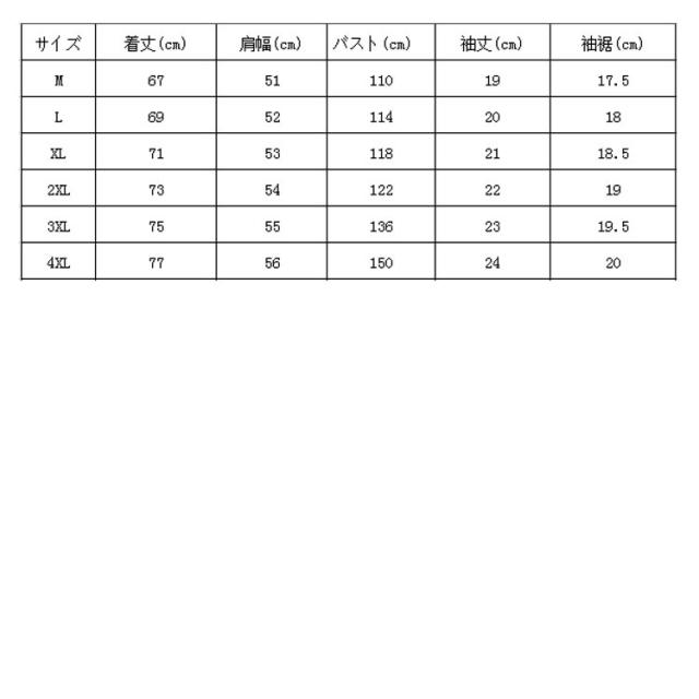 | サイズ | M L XL 2XL 3XL 4XL |