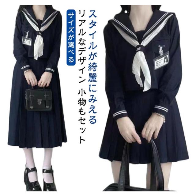 セーラー服 女子高生 制服 コスプレ JK制服 3点セット かわいい 長袖 半袖 シャツ スカート ロング丈 三角タイ スカーフ ロングスカート 上下セット 女子高校生 女子 学生服 高校生 学園祭 文化祭 レディース コスチューム衣装 衣装 仮装 ハロウィン