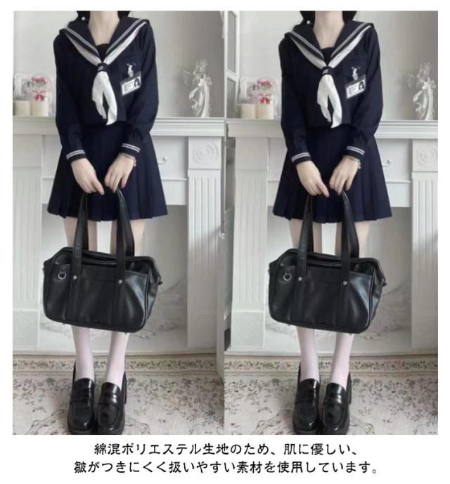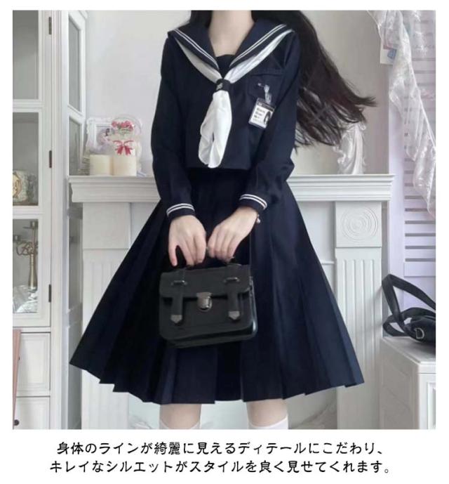 | トップス+スカート+三角スカーフの3点セット。【ロングスカート(75cm)、膝丈スカート(60cm)、ミニスカート(43cm)】3タイプが選べる! 【 リアルなデザイン 】良質のリボンに、綺麗な折り目のプリーツスカートなど、清潔感溢れるセーラー服に仕上がっています。本格的なコスプレが楽しめます。 【 生地感 】綿混ポリエステル生地のため、肌に優しい、皺がつきにくく扱いやすい素材を使用しています。 【 小物もセット 】靴下と合わせれば、よりキュートな女子高生が完成!コスプレに必要なものが全てセットになっており、すぐにあの頃の学生時代に戻れます。 【 スタイルが綺麗にみえる 】身体のラインが綺麗に見えるディテールにこだわり、キレイなシルエットがスタイルを良く見せてくれます。 【 サイズが選べる 】豊富なサイズ展開で、自分にピッタリあったサイズが選べます。お好みのサイズ感をチョイスして、可愛く着こなして下さいね♪ | |