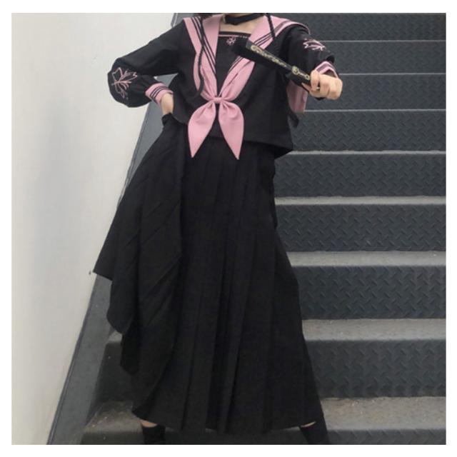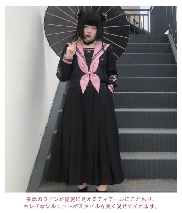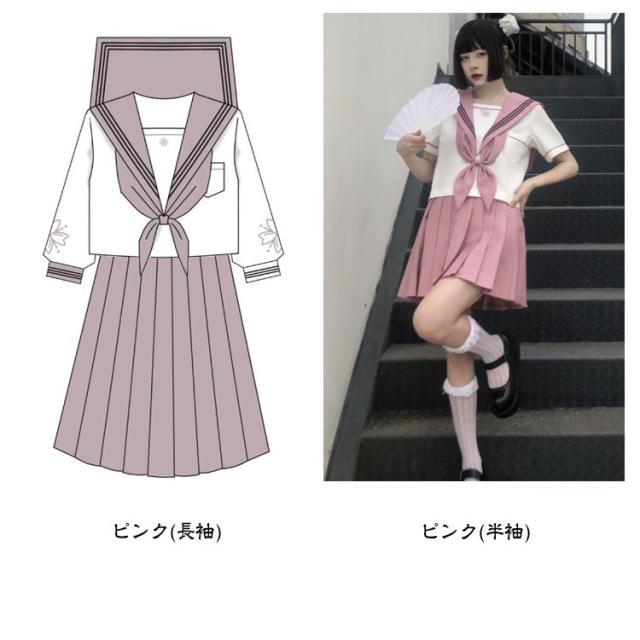セーラー服 ピンク 女子高生 制服 学生服 コスプレ 3点セット 可愛い 長袖 半袖 シャツ スカート リボン 上下セット ブラック 無地 JK制服 女子高校生 女子 高校生 学園祭 文化祭 レディース コスチューム衣装 衣装 仮装 ハロウィン イベント