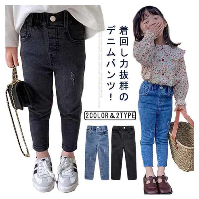 キッズ 女の子 デニムパンツ テーパードパンツ スキニーパンツ ジュニア デニム ウエストゴム ジーパン ロングパンツ ジーンズ 動きやすい ボトムス ダンス 衣装 子供服 子ども服 こども服 80 90 100 110 120 130 140 カジュアル 韓国子供服 春 夏 秋 冬 送料無料