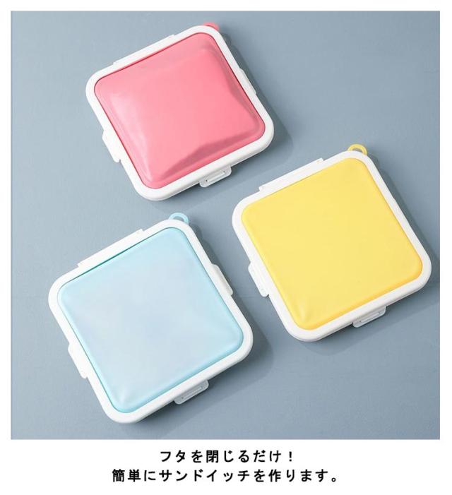 | サンドイッチを作って、そのまま持ち運べるランチケース フタを閉じるだけ! 簡単にサンドイッチを作ります。 シリコンのフタが伸びてピタッとフィットするので具がなじみやすく、スリムに運べて具材も片寄りません。 汚れたら水洗いだけできれいになり、繰り返し使用できるので経済的。 コンパクトでバッグのスペースを取らず、通勤・通学に最適なアイテムです。 | |