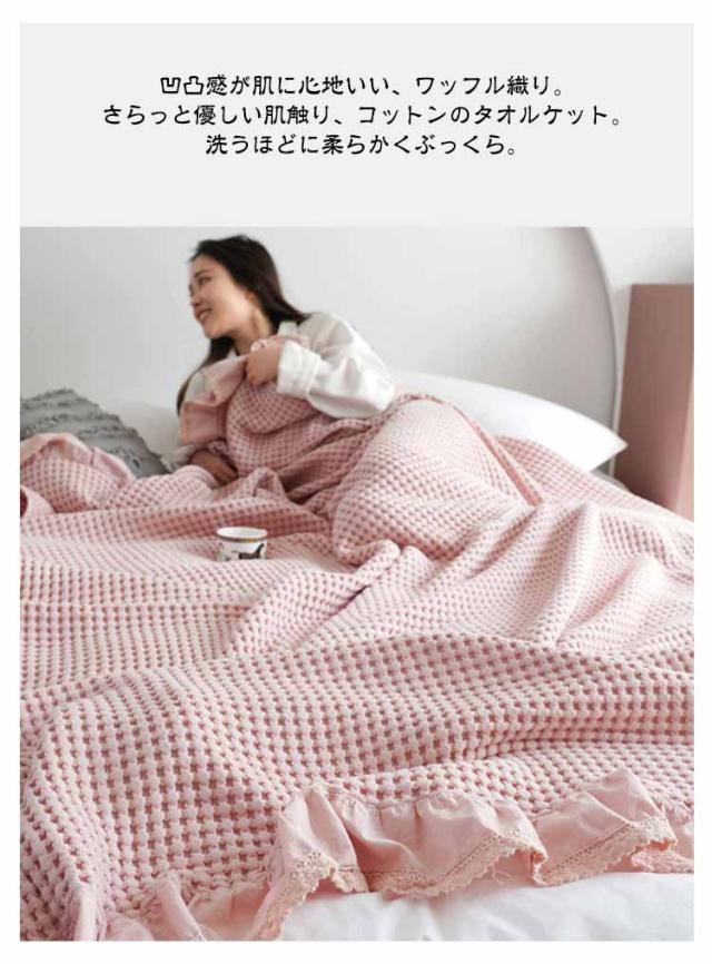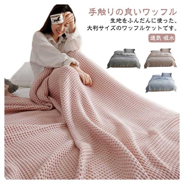 タオルケット ワッフルケット ブランケット シングル 綿 コットン 洗える 北欧 肌掛け マルチカバー ベッドカバー ソファーカバー ひざ掛け 肩掛け お昼寝 無地 春 秋 冬用 夏掛け おしゃれ 毛布 寝具 通気 冷房対策 オールシーズン かわいい リバーシブル ワッフル生地
