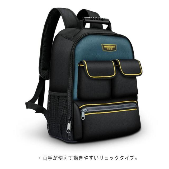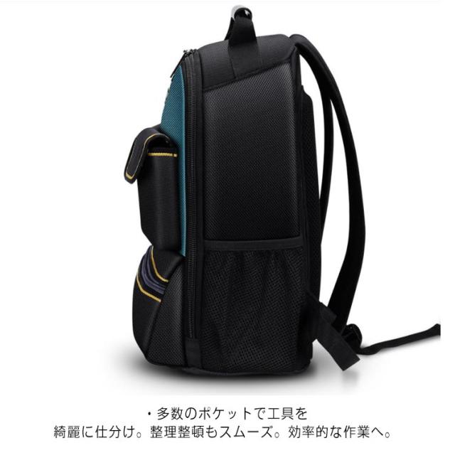 | ・ポケットがたくさん&底部強化で機能性も充実の「ツールバッグ」が登場 ・21個と多くのポケットがあり、工具などの仕分け・収納に非常に便利です。 ・両手が使えて動きやすいリュックタイプ。 ・多数のポケットで工具を綺麗に仕分け。整理整頓もスムーズ。効率的な作業へ。 ・開口部がファスナーなので、工具をきちっとしまって持ち運びできます。 ・ツールポケットは90°まで広げることができます。工具が一目でわかる。アクセスしやすく、時短にもつながる。 ・背面にクッション性を備えた設計。長時間の使用でも快適。肩にも優しい。 ・両手を自由にしながら工具を運搬できるためあらゆる技術者、作業者の方に最適です。 | |