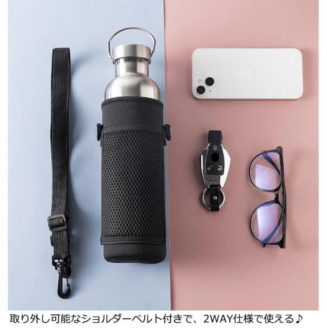 | マイボトルやペットボトルを入れて、斜め掛け☆調節可能なショルダーベルト付き水筒カバー2個セット。 暑い季節のお散歩やレジャー、アウトドアシーンなどで大活躍! ウェットスーツ等に使われる丈夫で伸びる特殊素材で大切なボトルを傷から守ります。 衝撃吸収、伸縮性・クッション性のある生地がボトルを包み込んで衝撃を和らげます。 ショルダーストラップを伸ばせば肩掛け、短くすればハンディータイプになります。 直径7〜9.5cmまでの水筒やペットボトルにご使用いただけます。 シンプルデザインなのでお子様から大人の方まで男女問わずご使用いただけます! | |