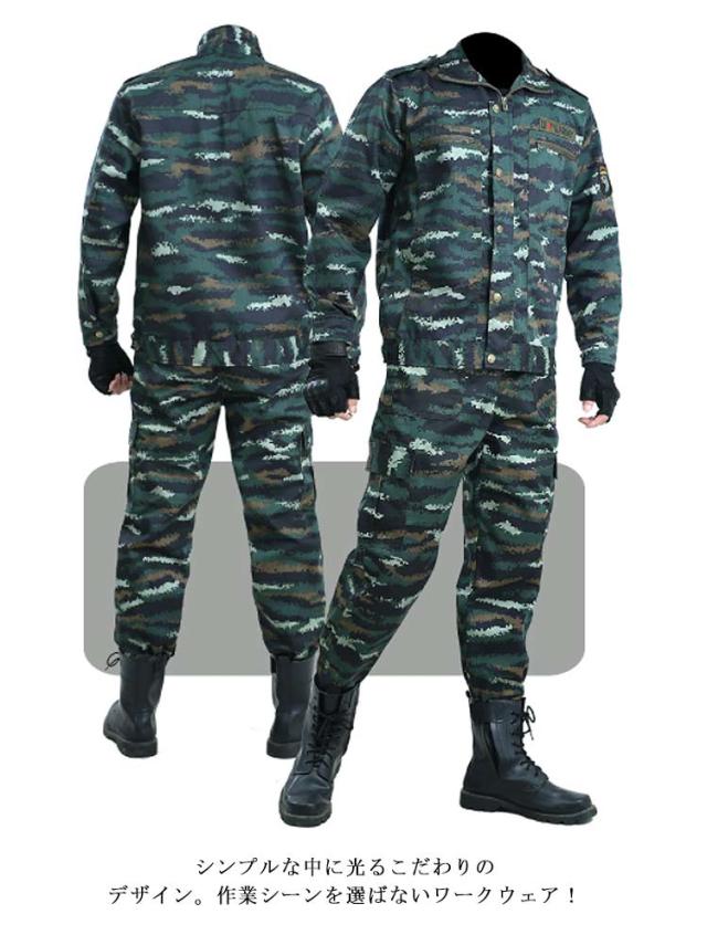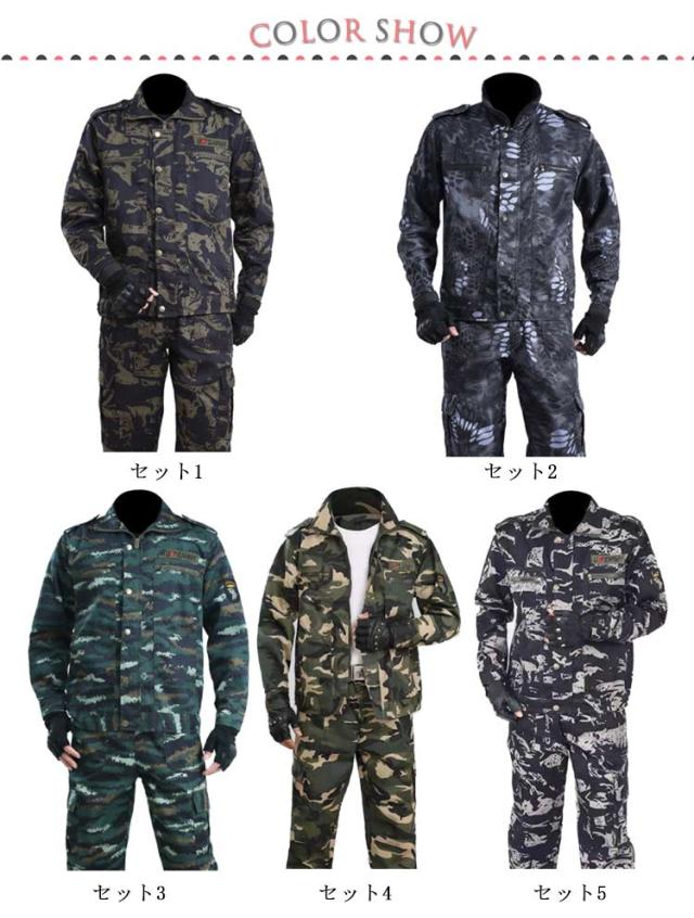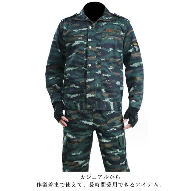 上下セット 作業服 迷彩柄 送料無料 メンズ ジャケット ロングパンツ ミリタリー カーゴパンツ ワーク 作業着 丈夫 アメカジ おしゃれ マルチポケット カジュアル お仕事 春 秋 農業 修理工場 物流 アウトドア