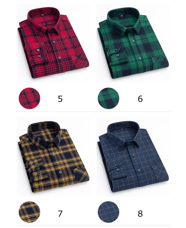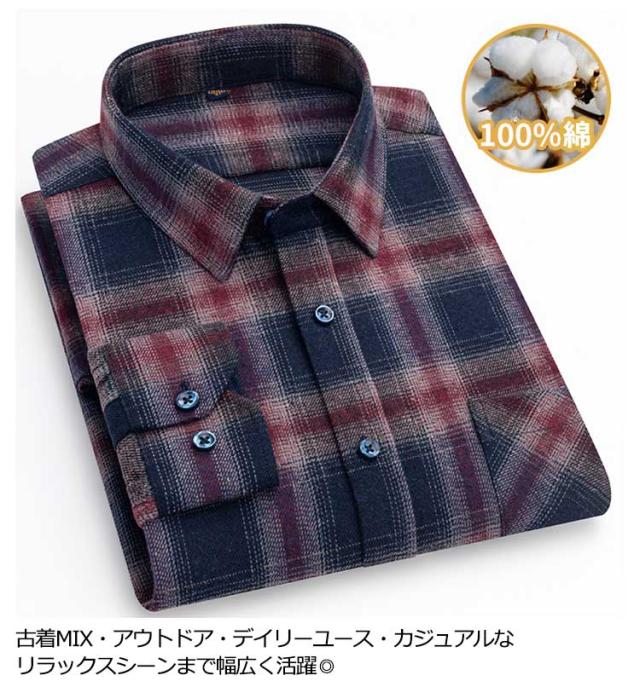 1点セット ネルシャツ メンズ シャツ チェック柄 長袖シャツ 秋冬 厚手 暖かい チェックシャツ コットン 綿 カジュアルシャツ トップス 秋服 秋物 父 男性 誕生日 敬老の日 プレゼント 30代 40代 50代 60代 大きいサイズ 【送料無料】